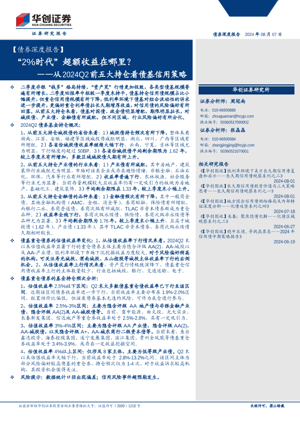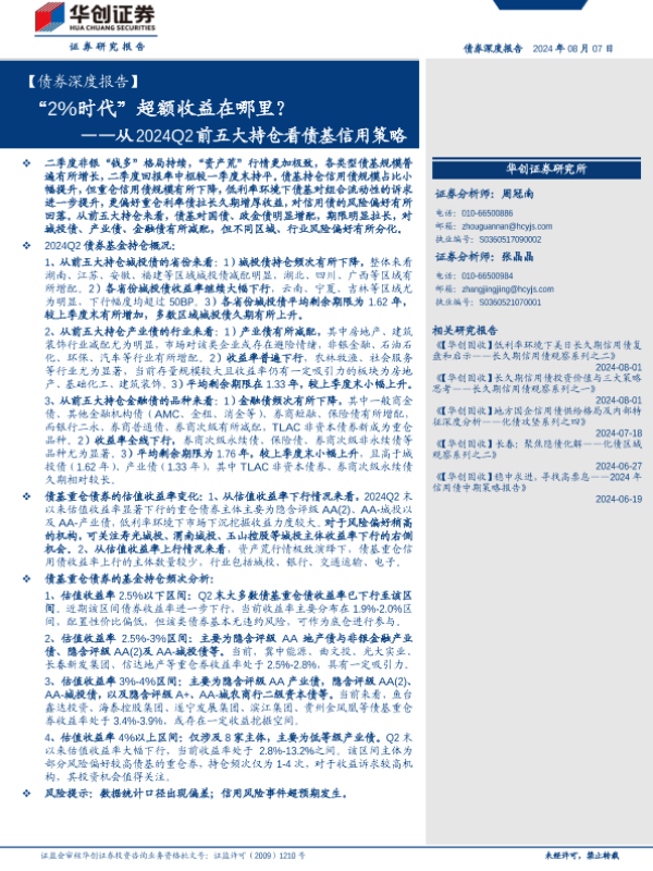 【华创证券】【20240807】从2024Q2前五大持仓看债基信用策略:“2%25时代”超额收益在哪里?-19页