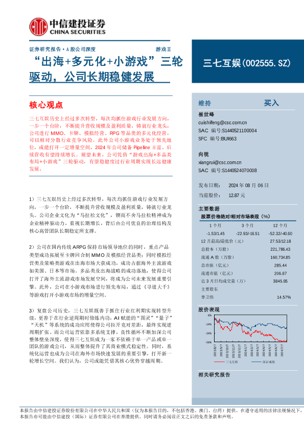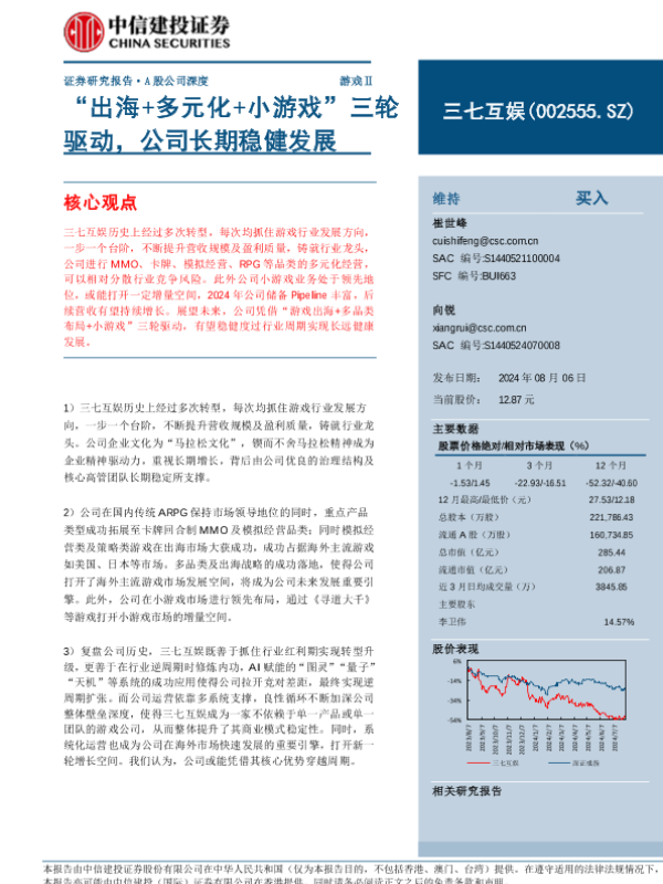 【中信建投证券】【20240806】三七互娱(002555)“出海+多元化+小游戏”三轮驱动,公司长期稳健发展-26页