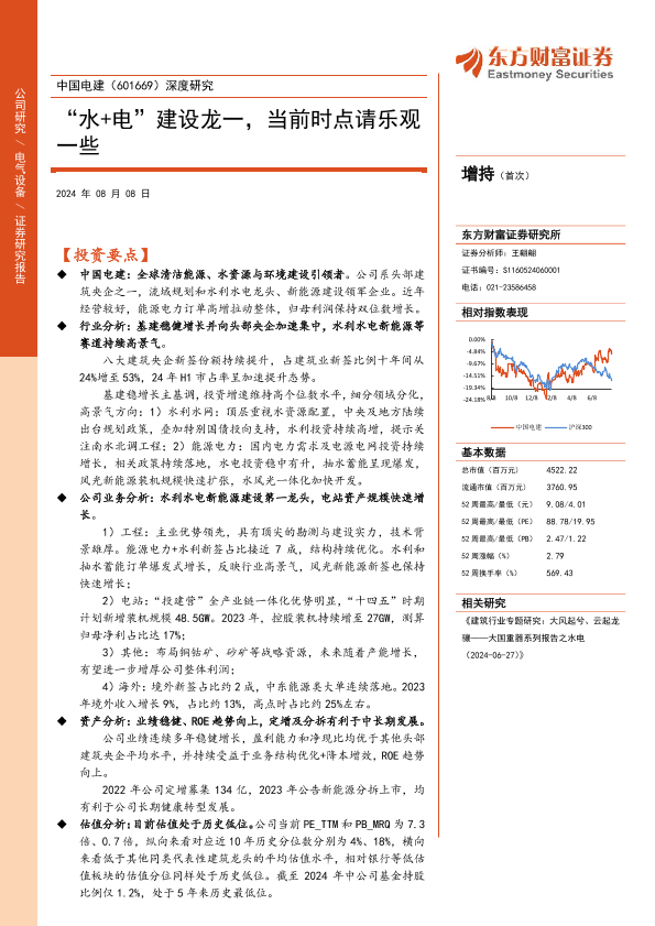 【东方财富证券】【20240808】中国电建(601669)深度研究:“水+电”建设龙一,当前时点请乐观一些-45页