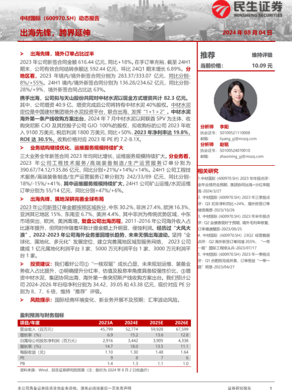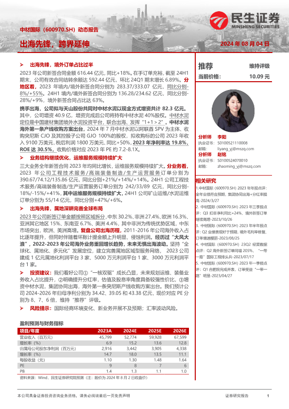 【民生证券】【20240804】中材国际(600970)动态报告:出海先锋,跨界延伸-21页