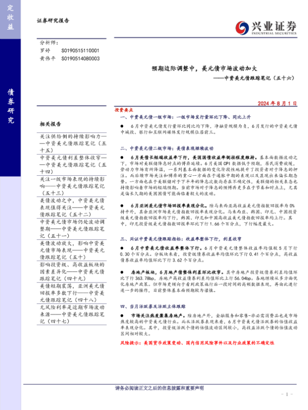 【兴业证券】【20240801】中资美元债跟踪笔记(五十六):预期边际调整中,美元债市场波动加大-22页
