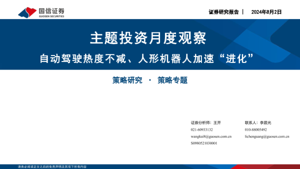 【国信证券】【20240802】主题投资月度观察:自动驾驶热度不减、人形机器人加速“进化”-27页