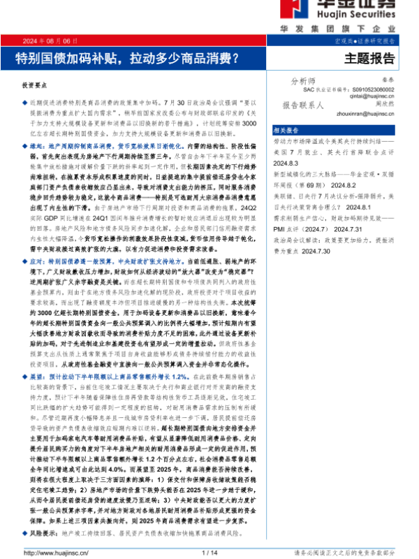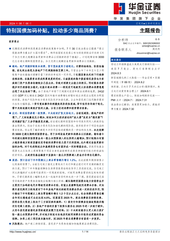 【华金证券】【20240806】特别国债加码补贴,拉动多少商品消费?-14页