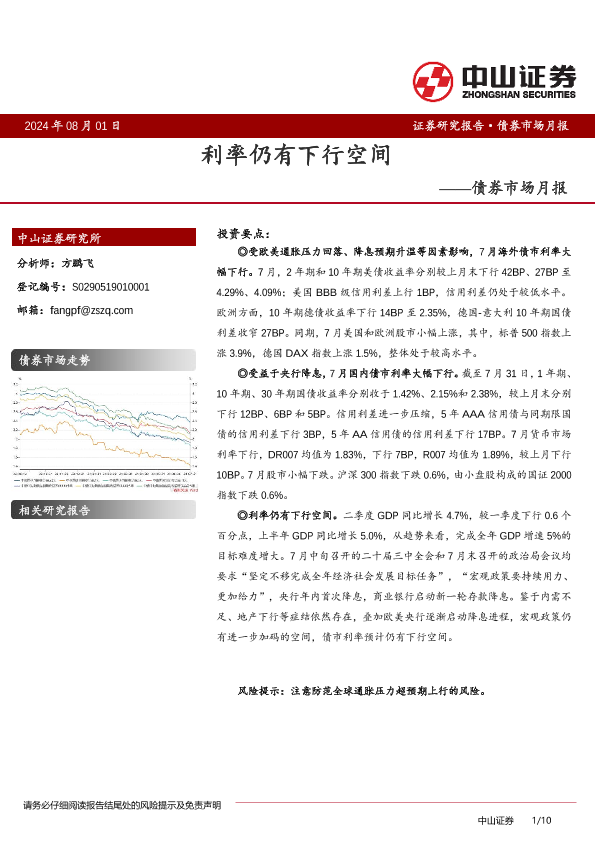 【中山证券】【20240801】债券市场月报:利率仍有下行空间-10页