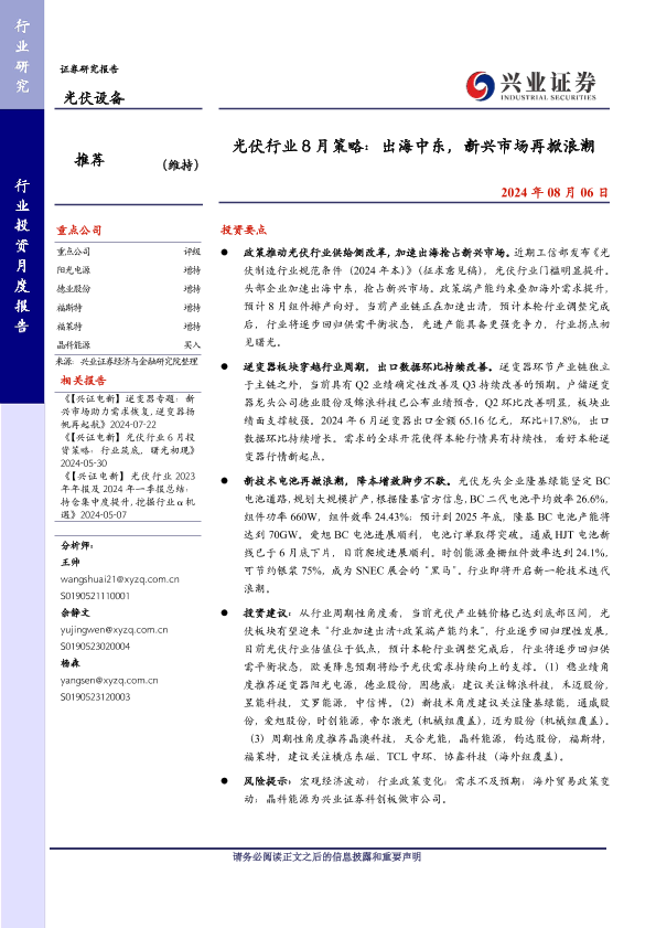 【兴业证券】【20240806】光伏行业8月策略:出海中东,新兴市场再掀浪潮-27页