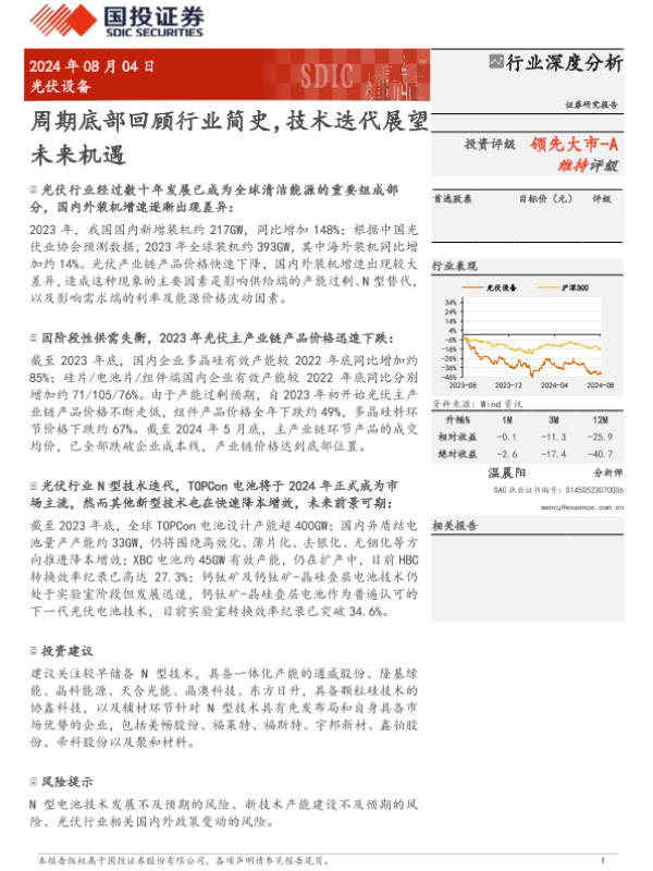 【国投证券】【20240804】光伏设备行业深度分析:周期底部回顾行业简史,技术迭代展望未来机遇-44页