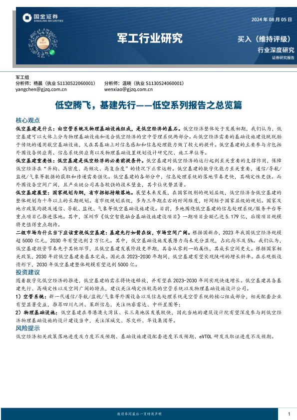 【国金证券】【20240805】军工行业低空系列报告之总览篇:低空腾飞,基建先行-21页