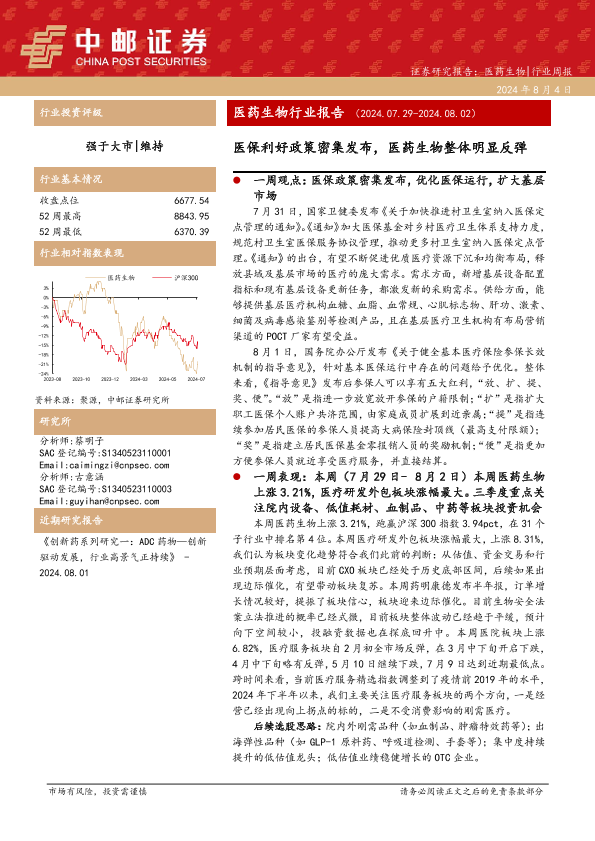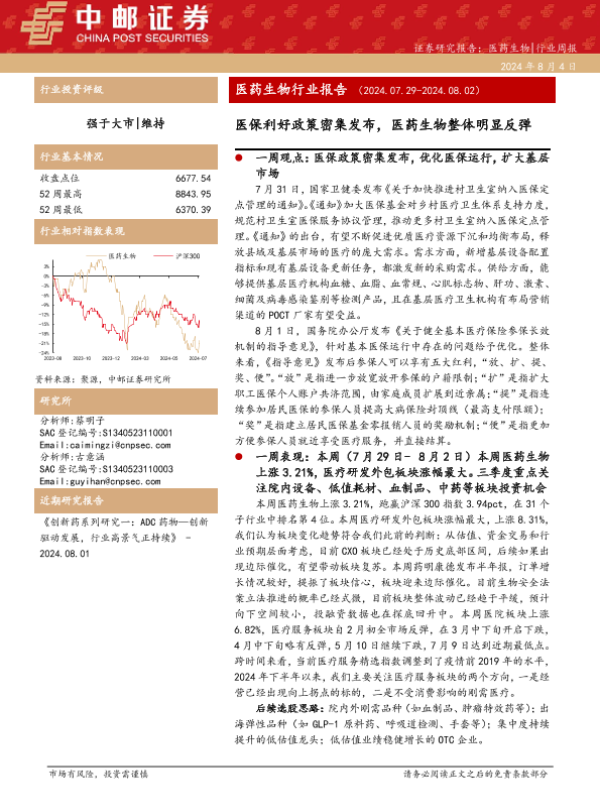 【中邮证券】【20240804】医药生物行业报告:医保利好政策密集发布,医药生物整体明显反弹-16页