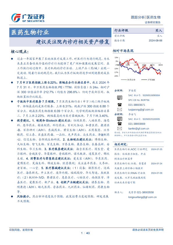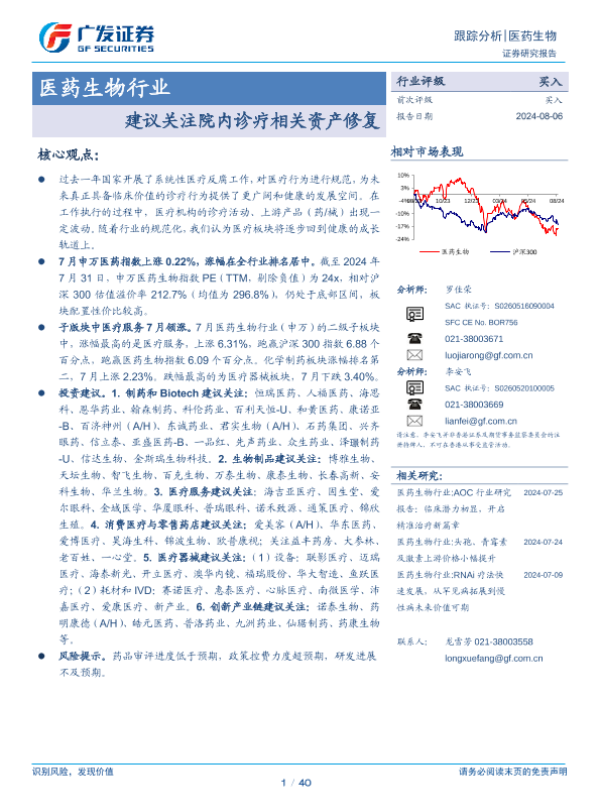【广发证券】【20240806】医药生物行业跟踪分析:建议关注院内诊疗相关资产修复-40页