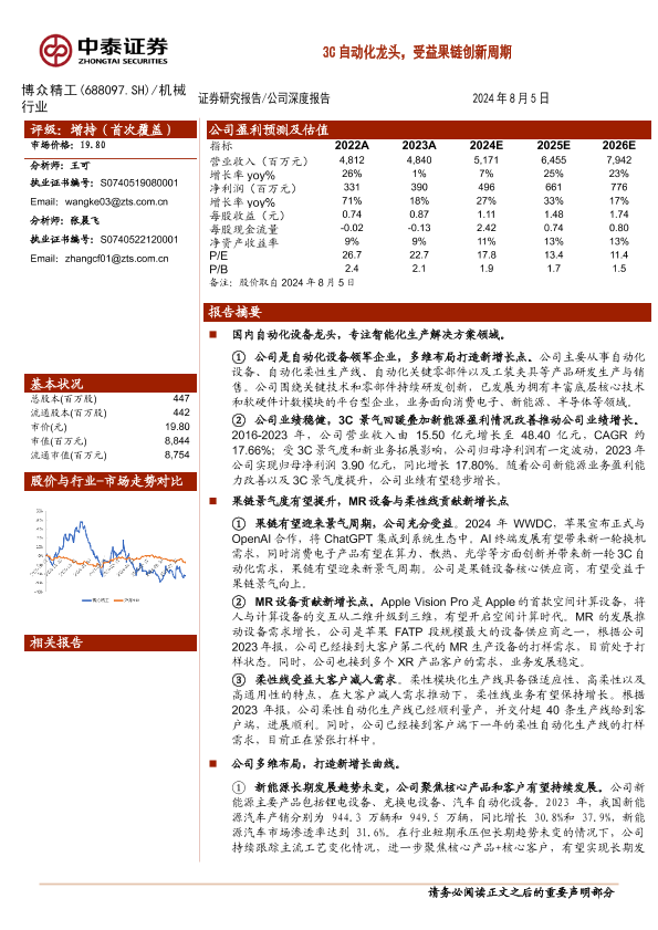 【中泰证券】【20240805】博众精工(688097)3C自动化龙头,受益果链创新周期-25页