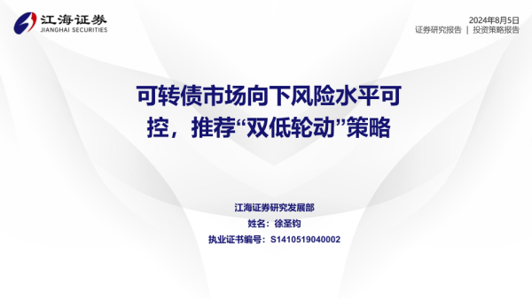 【江海证券】【20240805】可转债市场向下风险水平可控,推荐“双低轮动”策略-19页