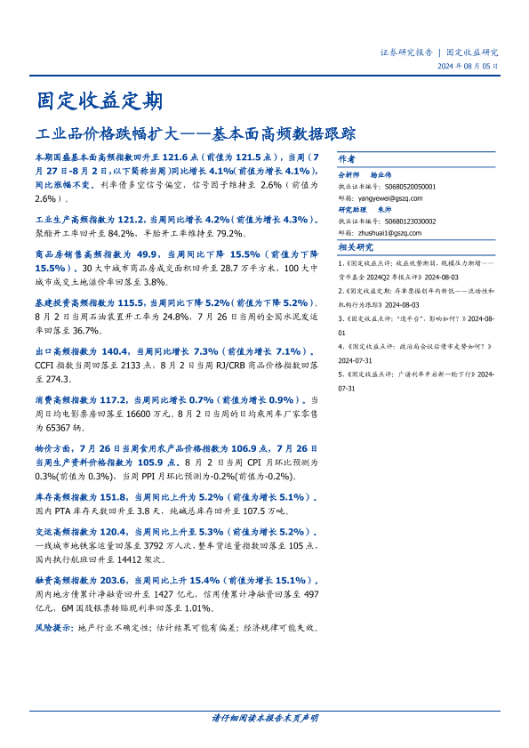【国盛证券】【20240805】固定收益定期-基本面高频数据跟踪:工业品价格跌幅扩大-19页