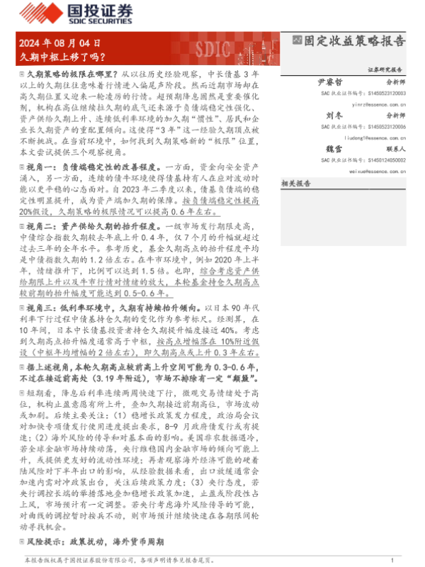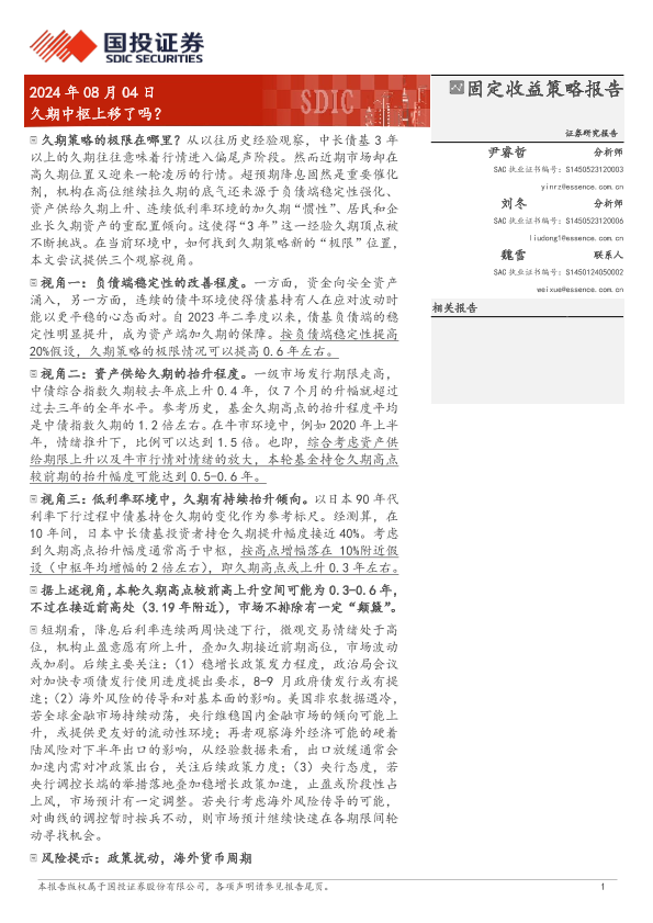 【国投证券】【20240804】固定收益策略报告:久期中枢上移了吗?-10页