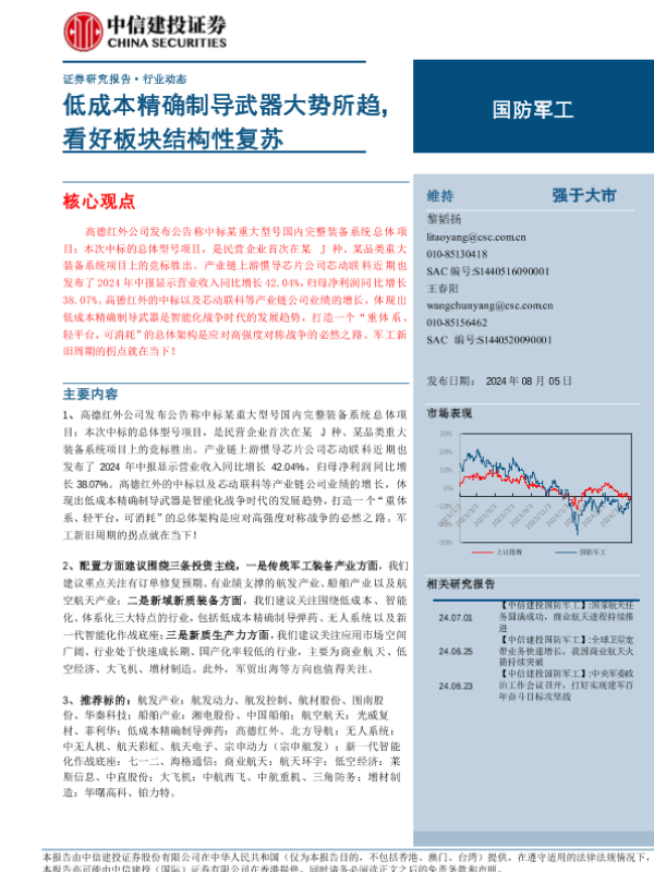 【中信建投证券】【20240805】国防军工行业:低成本精确制导武器大势所趋,看好板块结构性复苏-31页