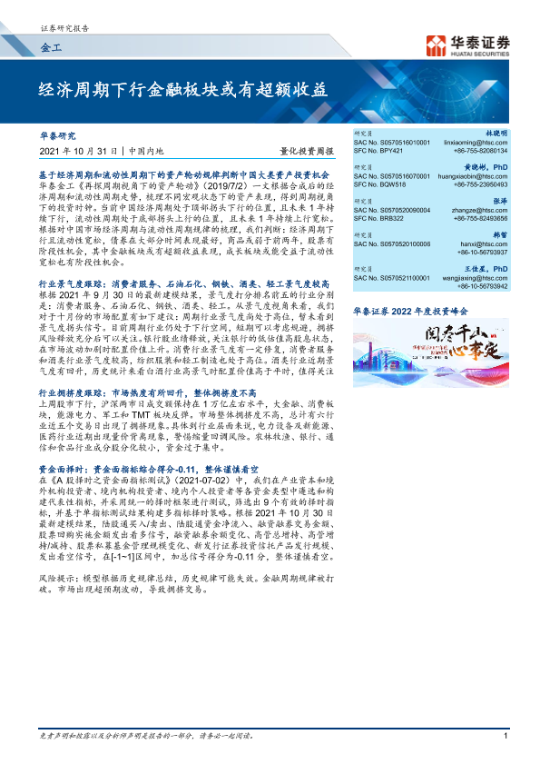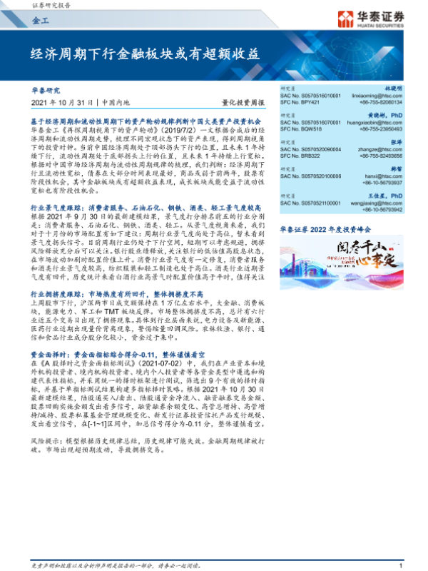 【华泰证券】【20211031】经济周期下行金融板块或有超额收益-18页