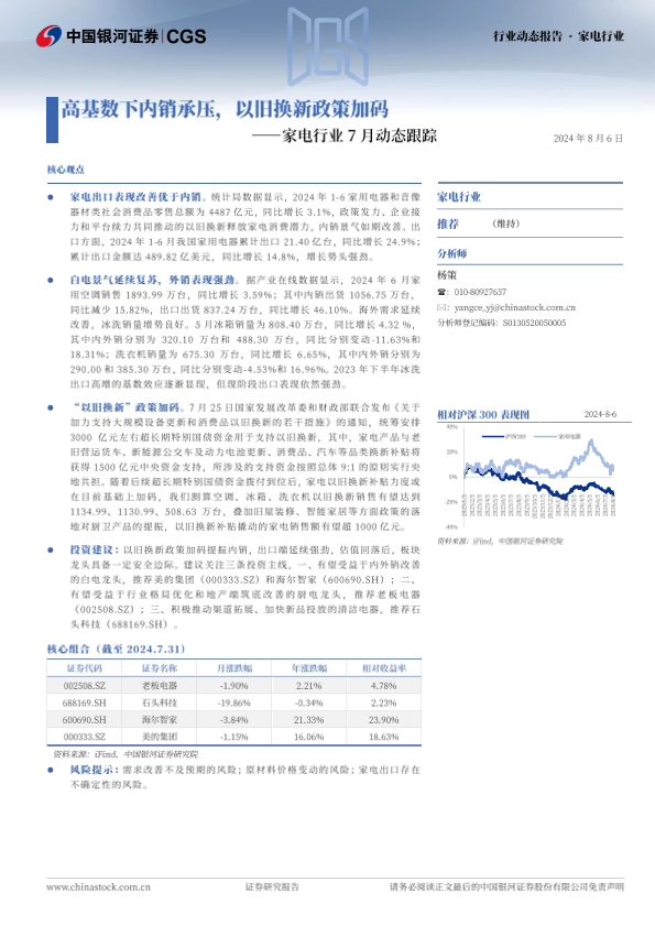 【银河证券】【20240806】家电行业7月动态跟踪:高基数下内销承压,以旧换新政策加码-17页