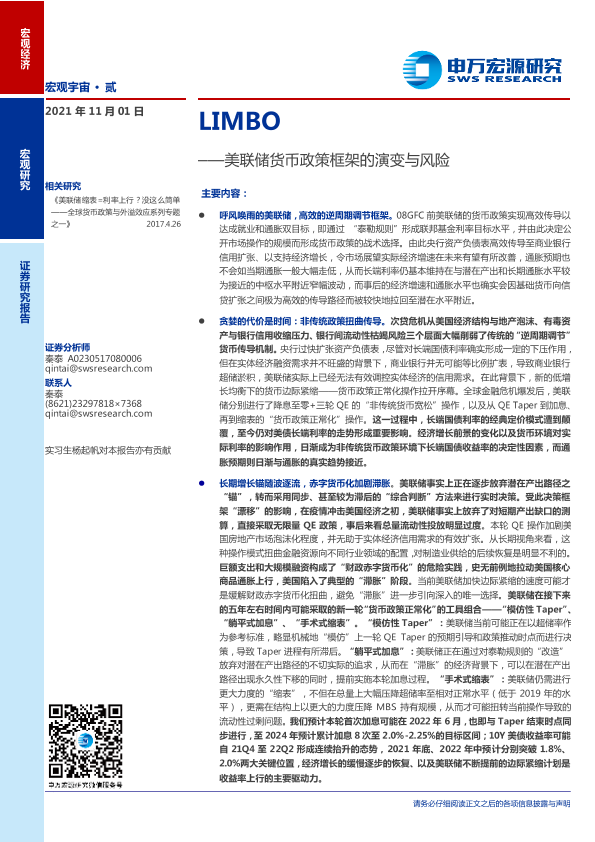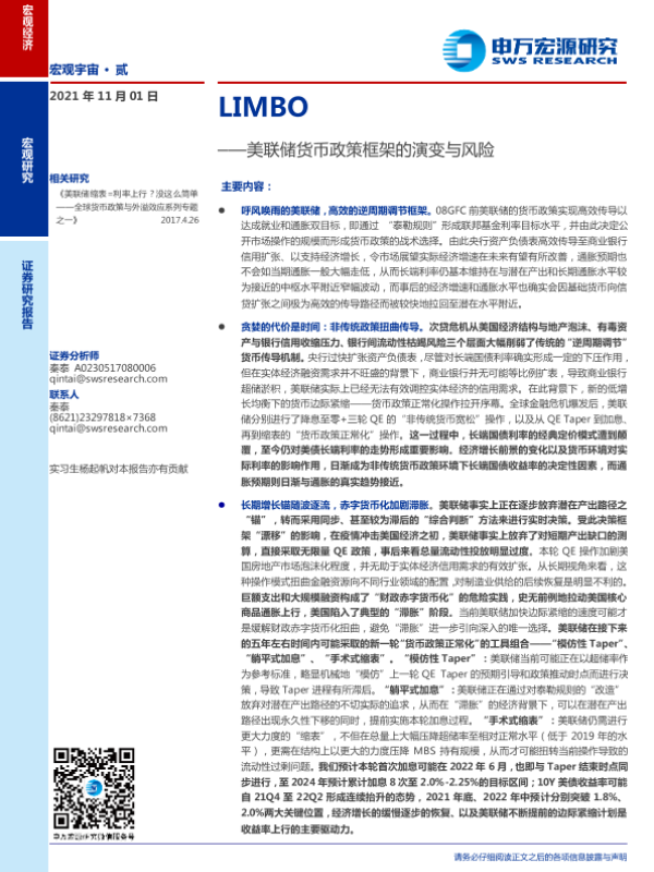 【申万宏源】【20211101】美联储货币政策框架的演变与风险:LIMBO-41页