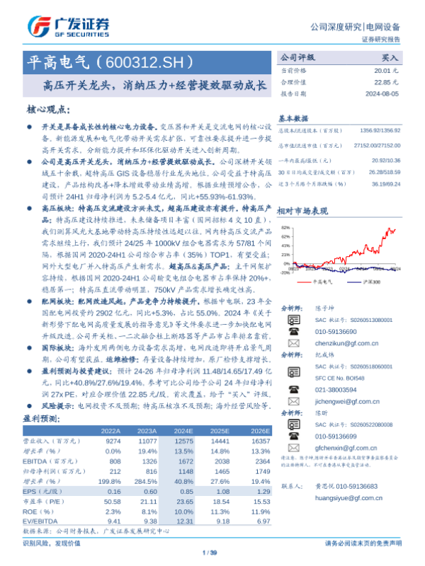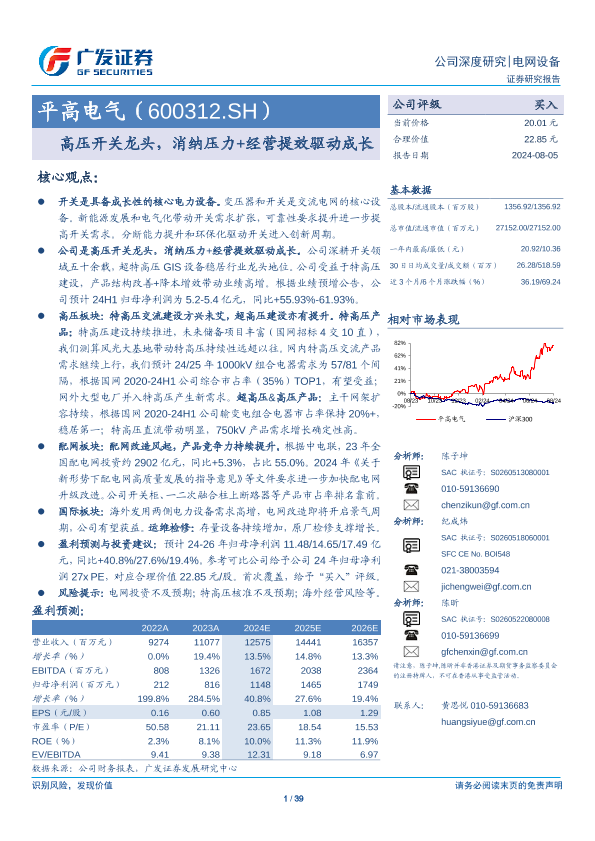 【广发证券】【20240805】平高电气(600312.SH)高压开关龙头,消纳压力+经营提效驱动成长-39页