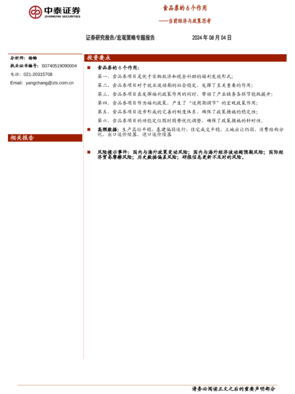 【中泰证券】【20240804】当前经济与政策思考:食品券的6个作用-15页