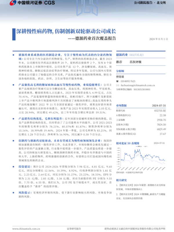 【银河证券】【20240801】德源药业(832735)首次覆盖报告:深耕慢性病药物,仿制创新双轮驱动公司成长-14页
