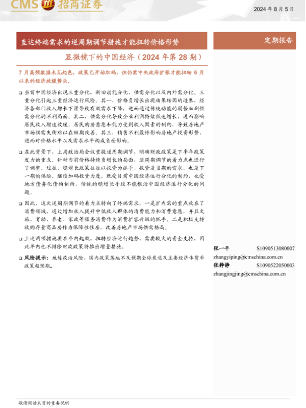 【海通证券】【20240805】显微镜下的中国经济(2024年第28期):直达终端需求的逆周期调节措施才能扭转价格形势-38页