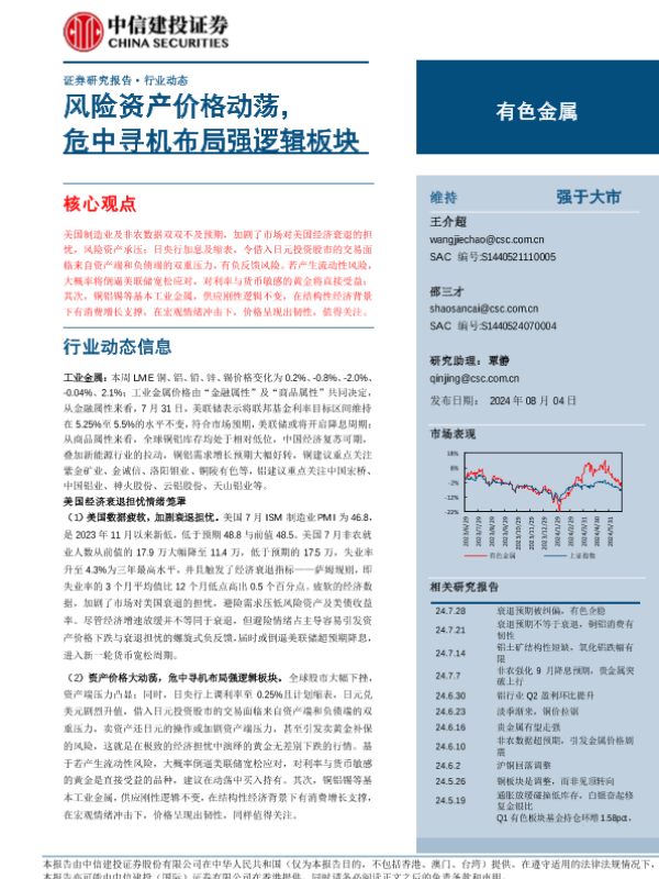【中信建投证券】【20240804】有色金属行业:风险资产价格动荡,危中寻机布局强逻辑板块-12页