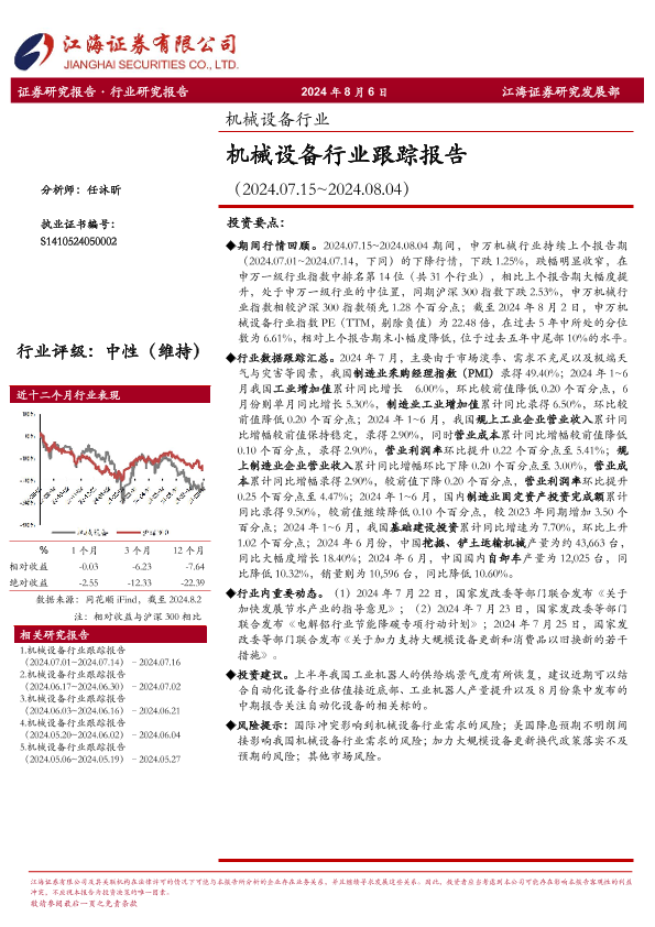 【江海证券】【20240806】机械设备行业跟踪报告-240806-20页