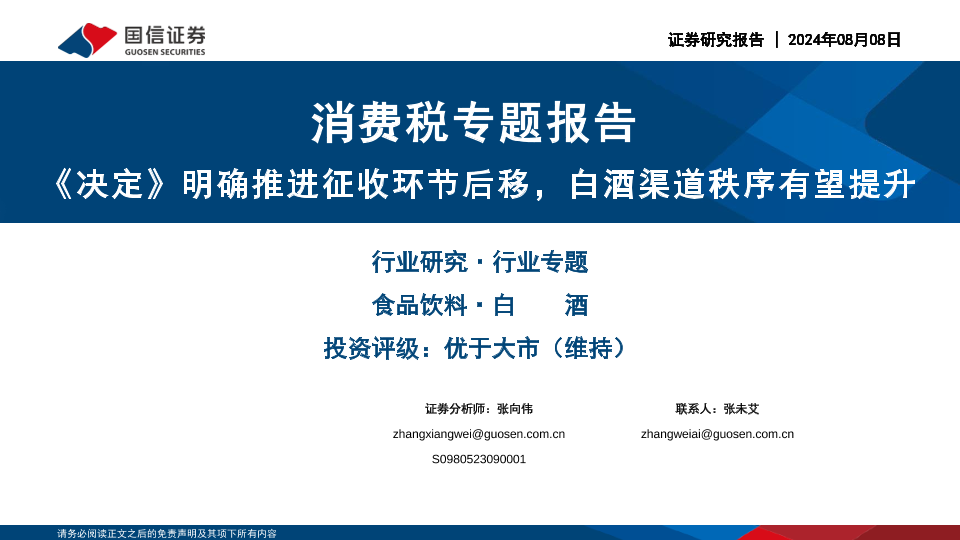 【国信证券】【20240808】消费税专题报告:《决定》明确推进征收环节后移,白酒渠道秩序有望提升-23页