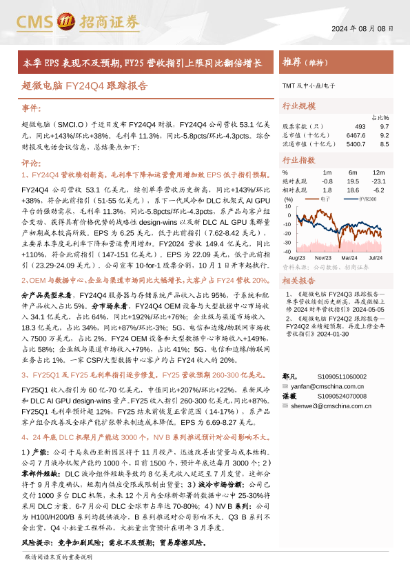 【海通证券】【20240808】电子行业超微电脑FY24Q4跟踪报告:本季EPS表现不及预期,FY25营收指引上限同比翻倍增长-13页