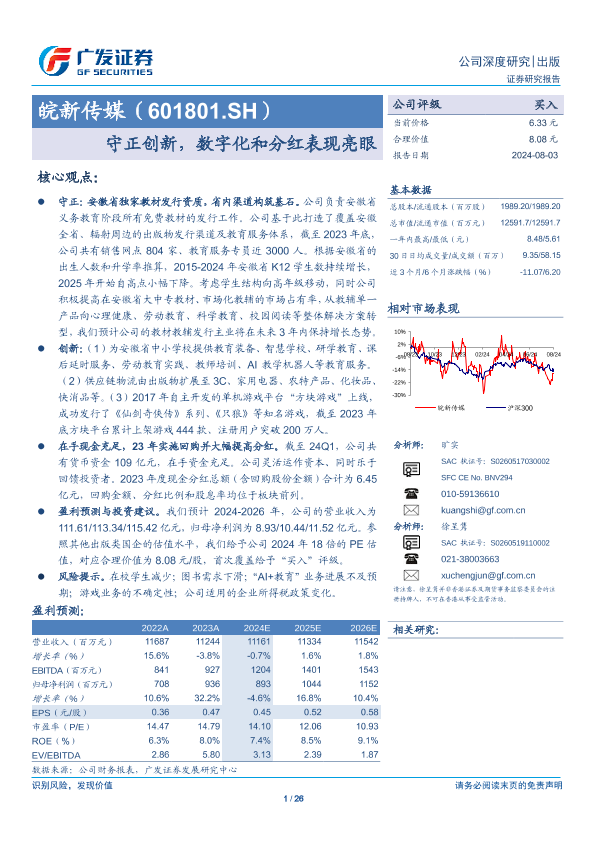 【广发证券】【20240803】皖新传媒(601801.SH)守正创新,数字化和分红表现亮眼-26页