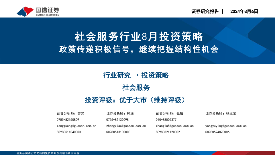 【国信证券】【20240806】社会服务行业8月投资策略:政策传递积极信号,继续把握结构性机会-21页