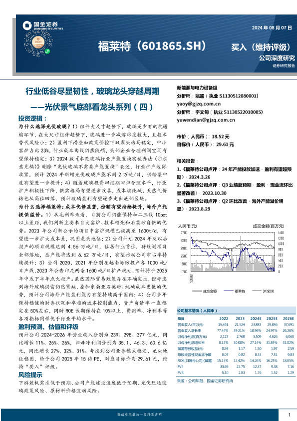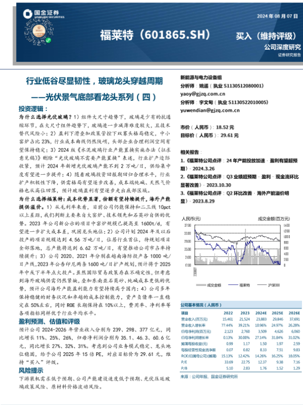 【国金证券】【20240807】福莱特(601865)光伏景气底部看龙头系列(四):行业低谷尽显韧性,玻璃龙头穿越周期-26页