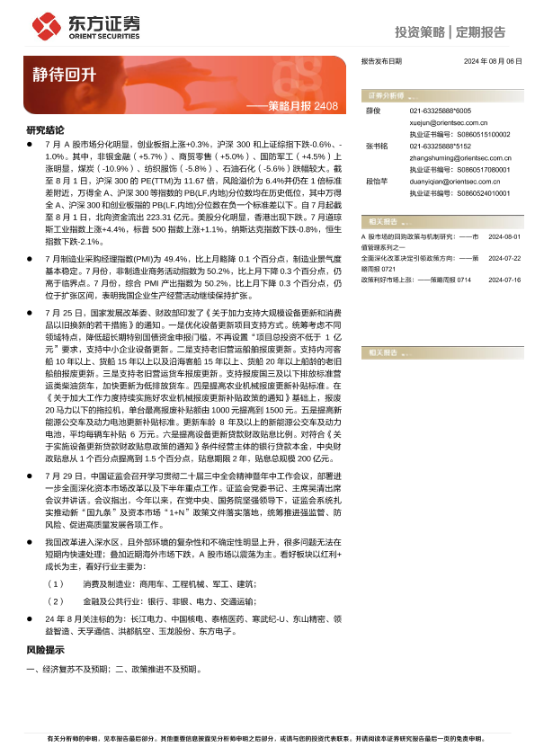 A股市场 政策分析 经济复苏 行业配置 资本市场