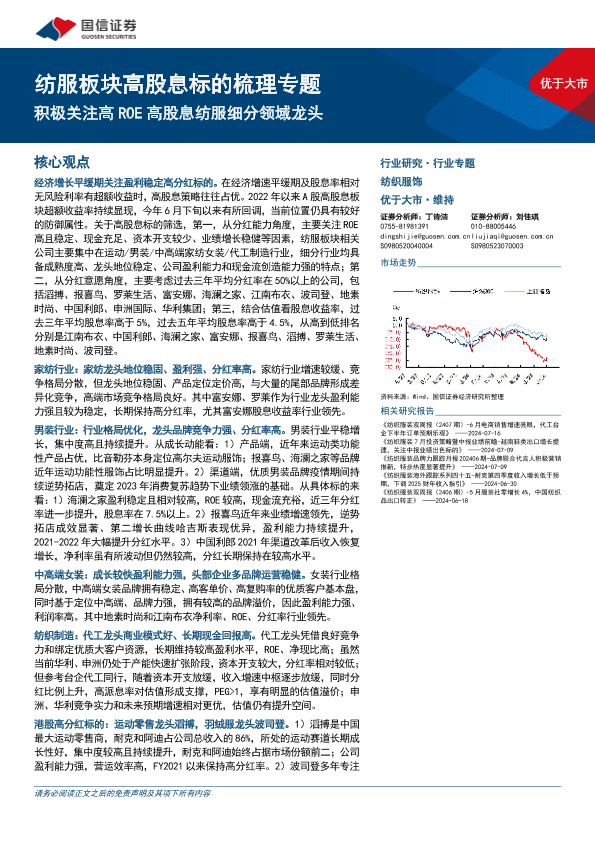 投资策略 纺服行业 财务分析 高股息 龙头企业