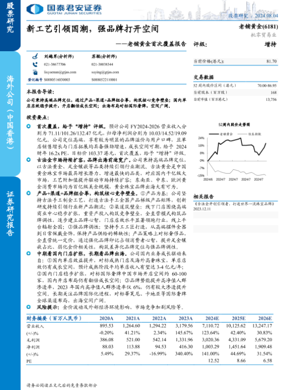 【国泰君安证券】【20240804】老铺黄金(6181.HK)首次覆盖报告:新工艺引领国潮,强品牌打开空间-45页