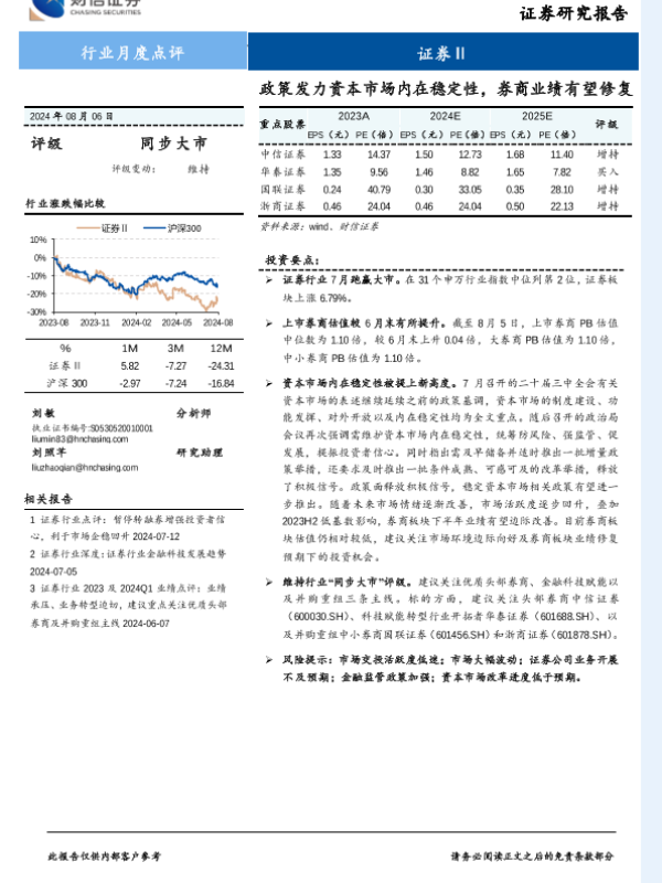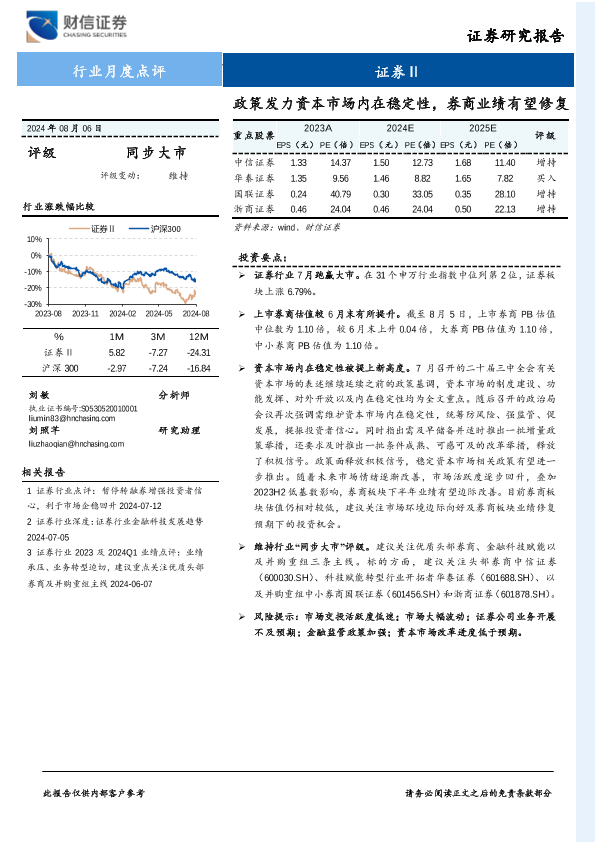 【财信证券】【20240806】证券行业月度点评:政策发力资本市场内在稳定性,券商业绩有望修复-10页