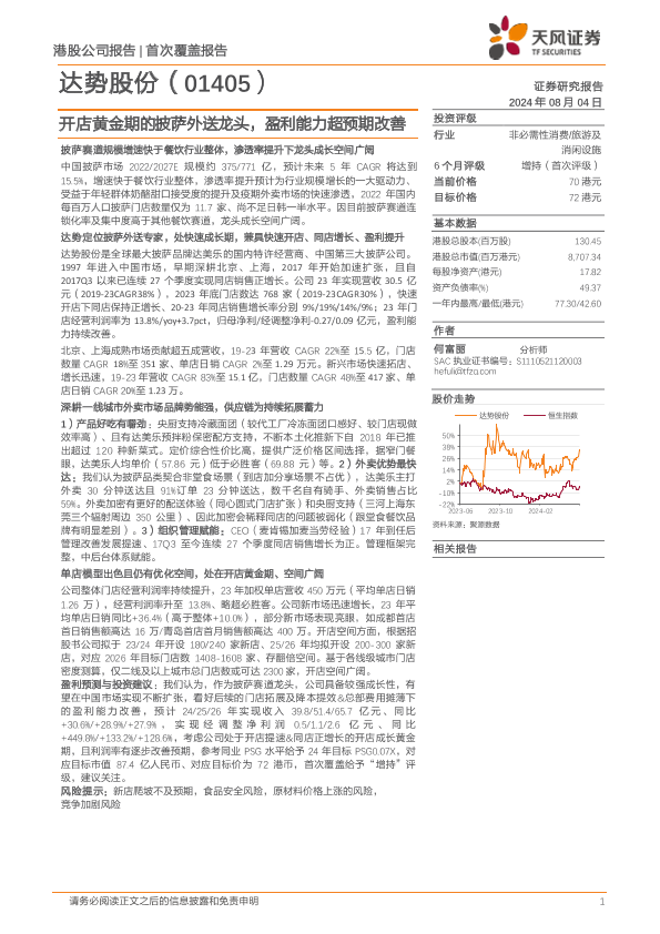 【天风证券】【20240804】达势股份(1405.HK)开店黄金期的披萨外送龙头,盈利能力超预期改善-30页