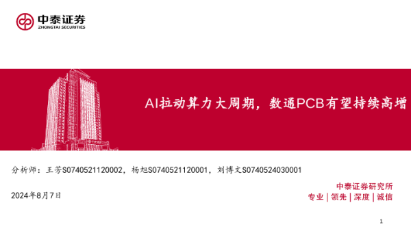 【中泰证券】【20240807】通信行业:AI拉动算力大周期,数通PCB有望持续高增-33页