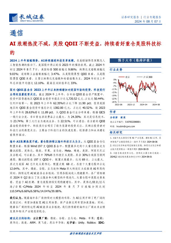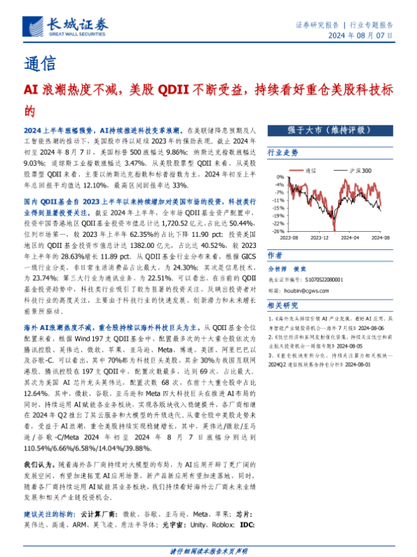 【长城证券】【20240807】通信行业:AI浪潮热度不减,美股QDII不断受益,持续看好重仓美股科技标的-12页