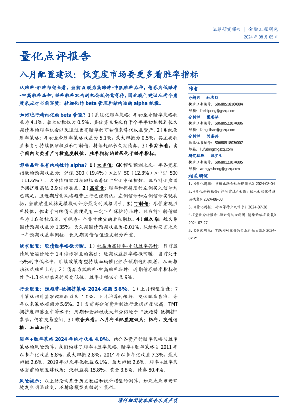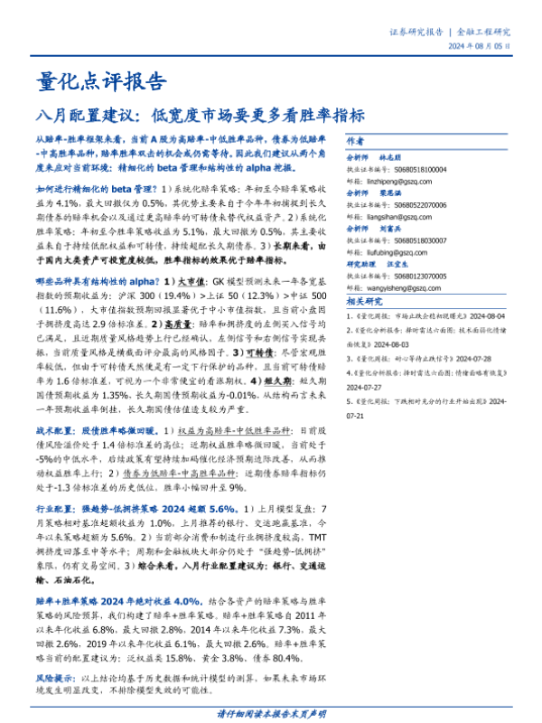 【国盛证券】【20240805】量化点评报告-八月配置建议:低宽度市场要更多看胜率指标-16页