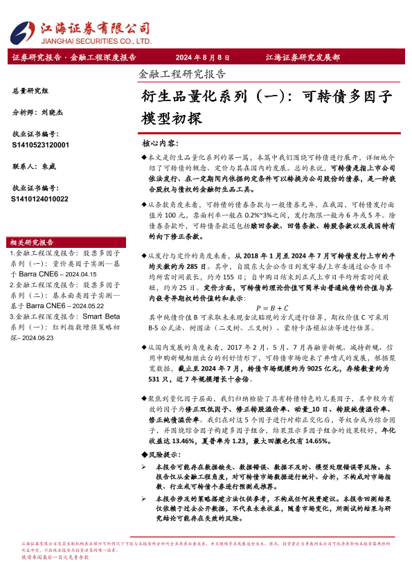 【江海证券】【20240808】金融工程深度报告-衍生品量化系列(一):可转债多因子模型初探-23页
