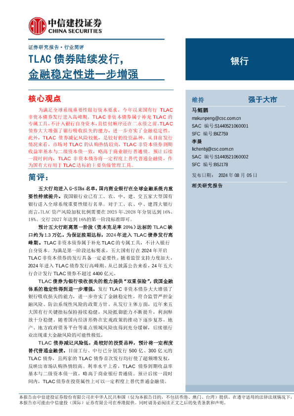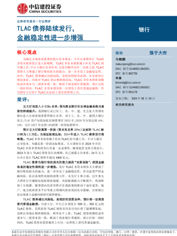 【中信建投证券】【20240805】银行业:TLAC债券陆续发行,金融稳定性进一步增强-11页