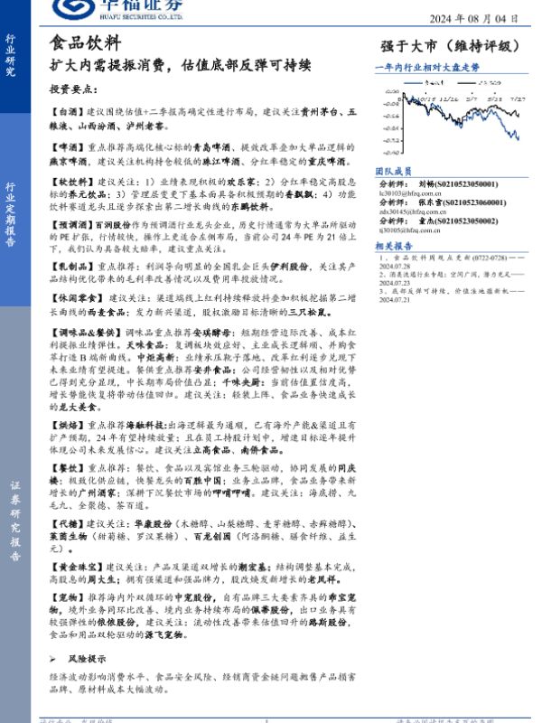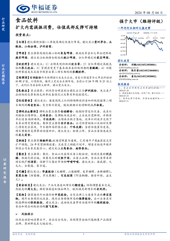 【华福证券】【20240804】食品饮料行业定期报告:扩大内需提振消费,估值底部反弹可持续-13页