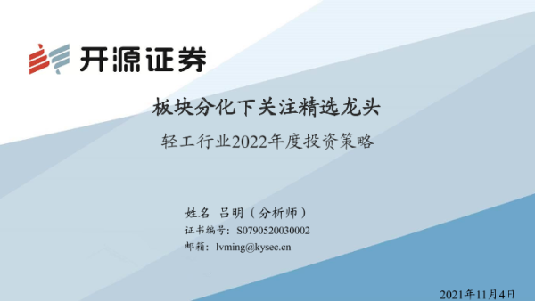 【开源证券】【20211104】轻工行业2022年度投资策略:板块分化下关注精选龙头-36页