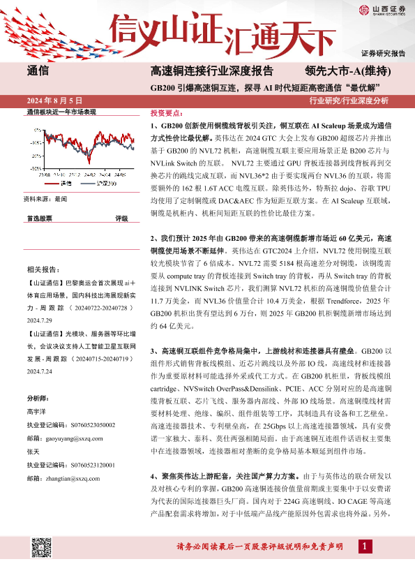 【山西证券】【20240805】高速铜连接行业深度报告:GB200引爆高速铜互连,探寻AI时代短距高密通信“最优解”-30页