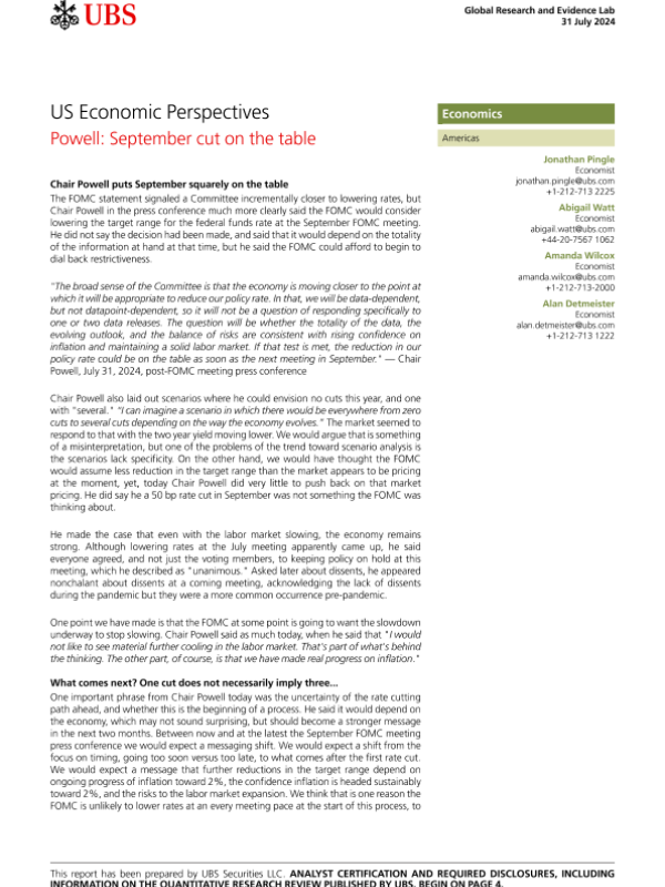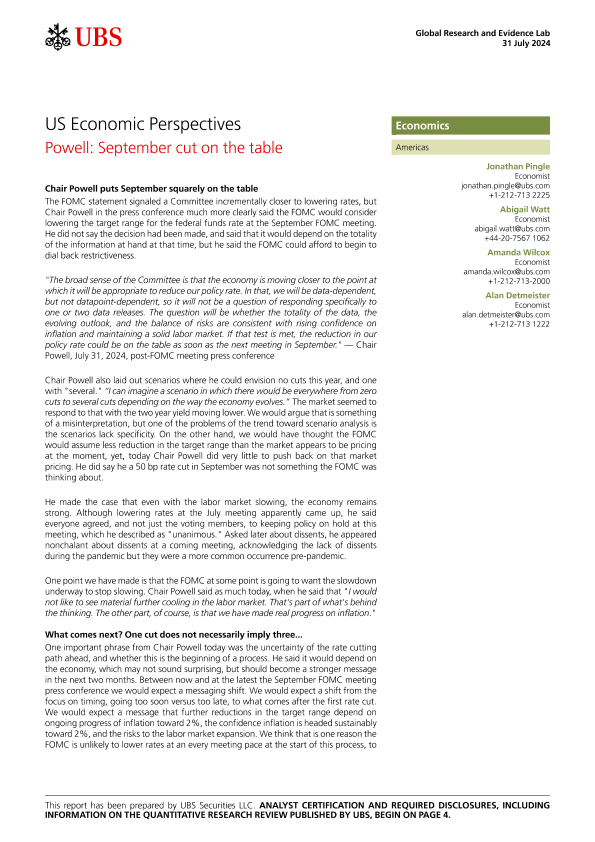 【UBS Securities LLC】【20240731】US Economic Perspectives Powell September cut on the table-7页