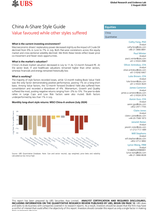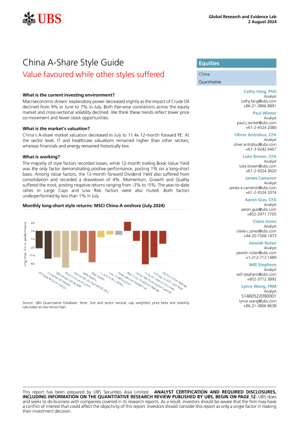 【UBS Securities Asia Limited】【20240802】China A-Share Style Guide-16页