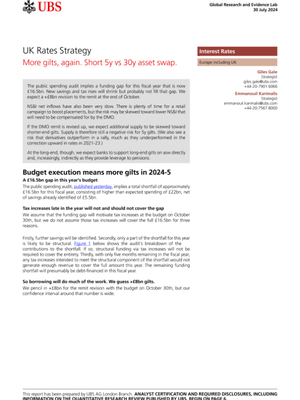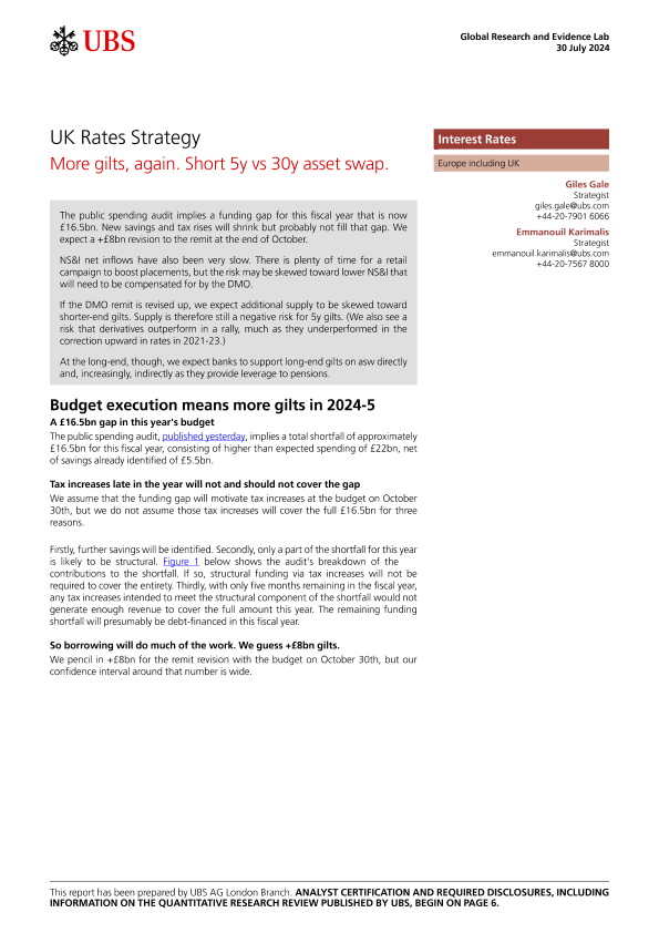 【UBS AG London Branch】【20240730】UK Rates Strategy More gilts, again. Short 5y vs 30y asset swap-10页