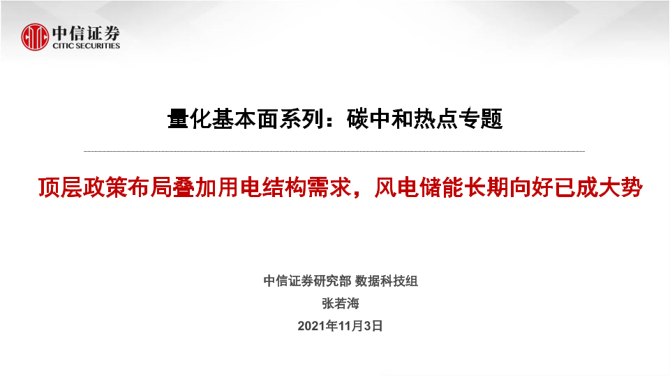 【中信证券】【20211103】量化基本面系列:碳中和热点专题,顶层政策布局叠加用电结构需求,风电储能长期向好已成大势-17页
