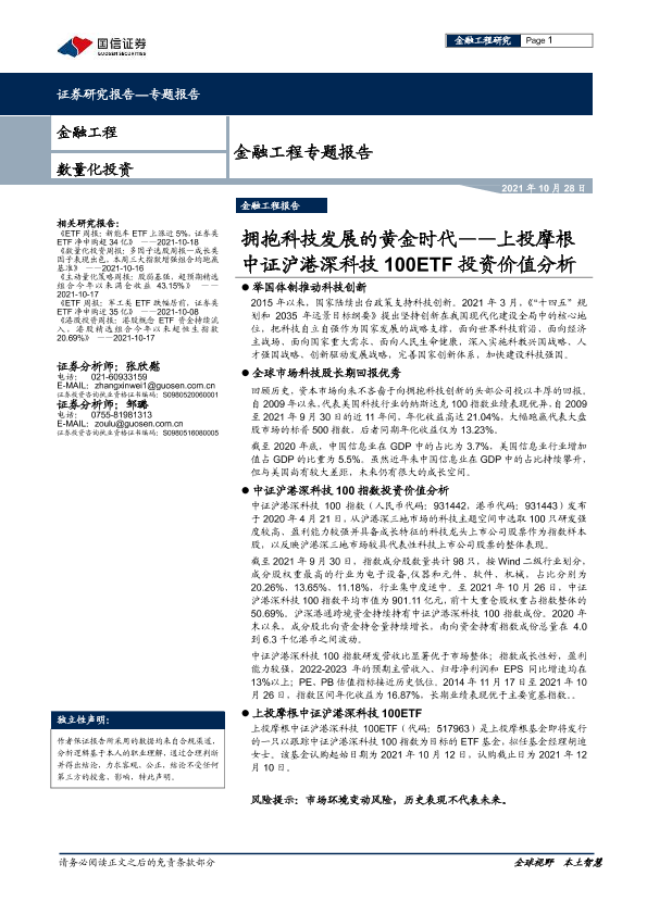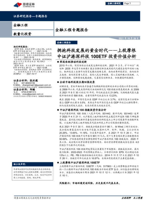 【国信证券】【20211028】金融工程专题报告:上投摩根中证沪港深科技100ETF投资价值分析,拥抱科技发展的黄金时代-17页